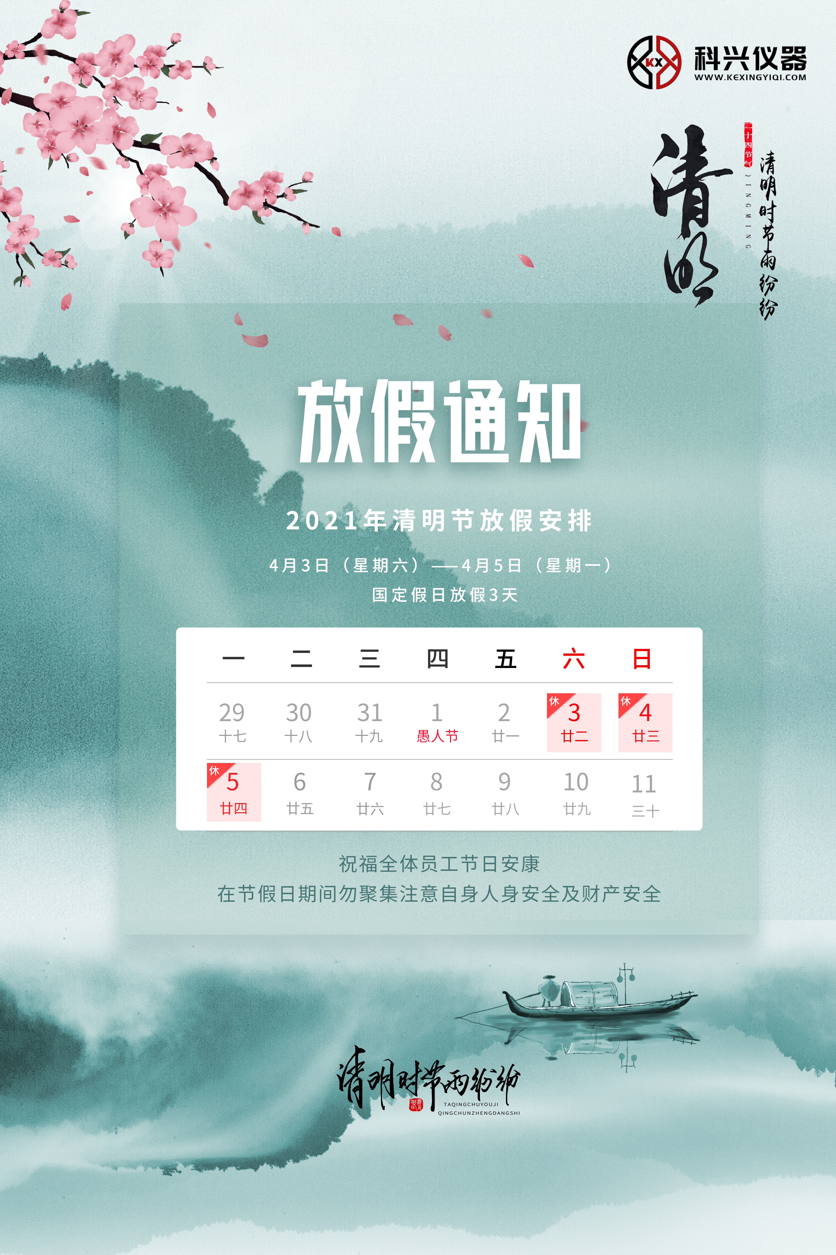 清明小長(zhǎng)假就要到來(lái)了,首先感謝您一直以來(lái)對(duì)上海科興儀器的支持和理解!