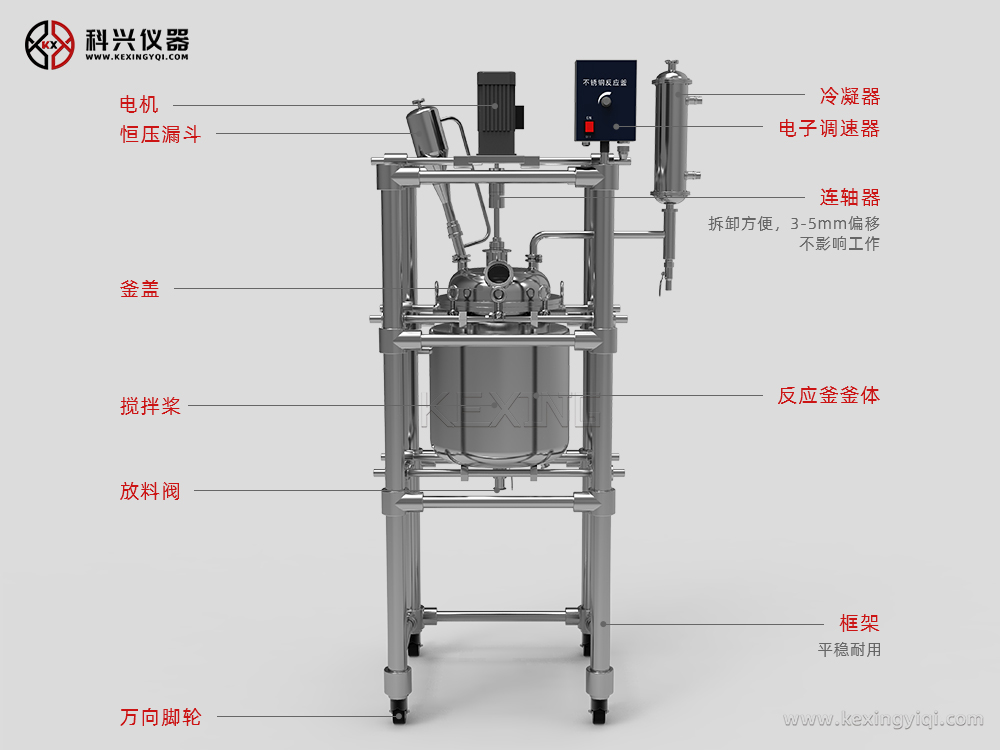 雙層不銹鋼反應(yīng)釜是常用的生化儀器,廣泛地被現(xiàn)代精細(xì)化工、生物制藥、科研實驗等行業(yè)所選用,可在恒速、恒力、恒溫的條件下做濃縮、蒸餾、回流、分離、提純反應(yīng),是教學(xué)、實驗、中試、生產(chǎn)的理想儀器設(shè)備。 通過雙層反應(yīng)釜夾層,注入恒溫的(高溫或低溫)熱溶液或冷卻液,對反應(yīng)釜內(nèi)的物料進(jìn)行恒溫加熱或制冷,并且可以提供攪拌。物料在反應(yīng)釜內(nèi)進(jìn)行反應(yīng),并能控制反應(yīng)溶液的蒸發(fā)與回流,反應(yīng)完畢,物料可從釜底的出料口放出,操作方便。是現(xiàn)代化學(xué)小樣、石油化工、中樣實驗、生物制藥及新材料合成的理想設(shè)備。