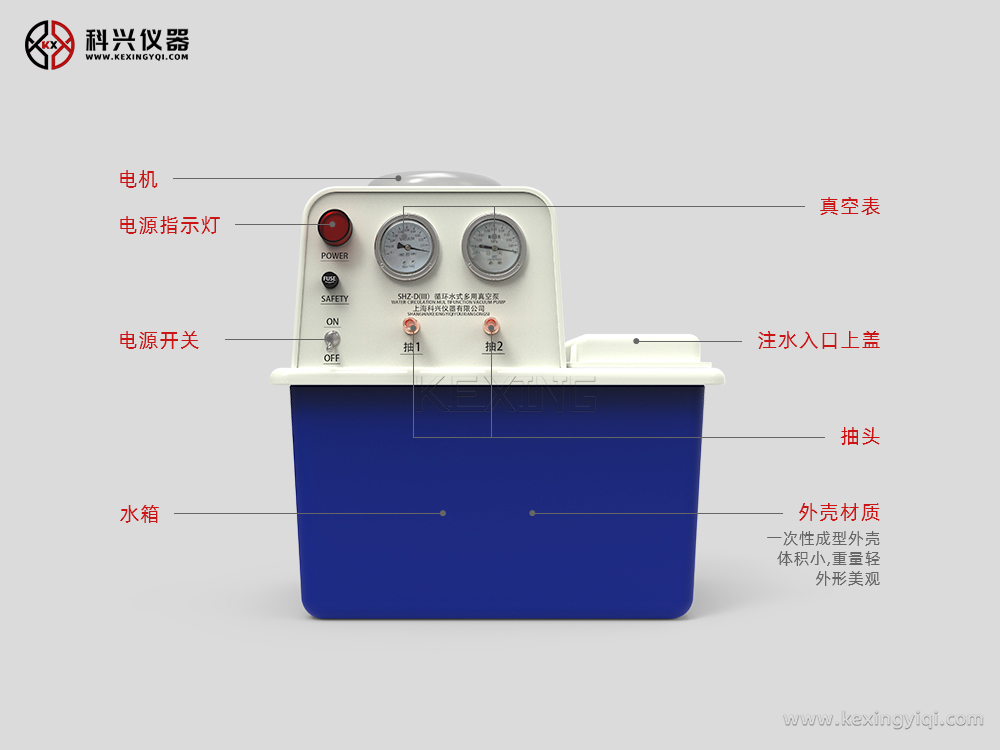 該泵是在循環(huán)水多用真空泵的基礎上,根據(jù)實驗室面積較小這一特點,參照日本臺式泵,一次性成型外殼,縮小體積改進而成,具有體積小,重量輕,外形美觀等特點。
